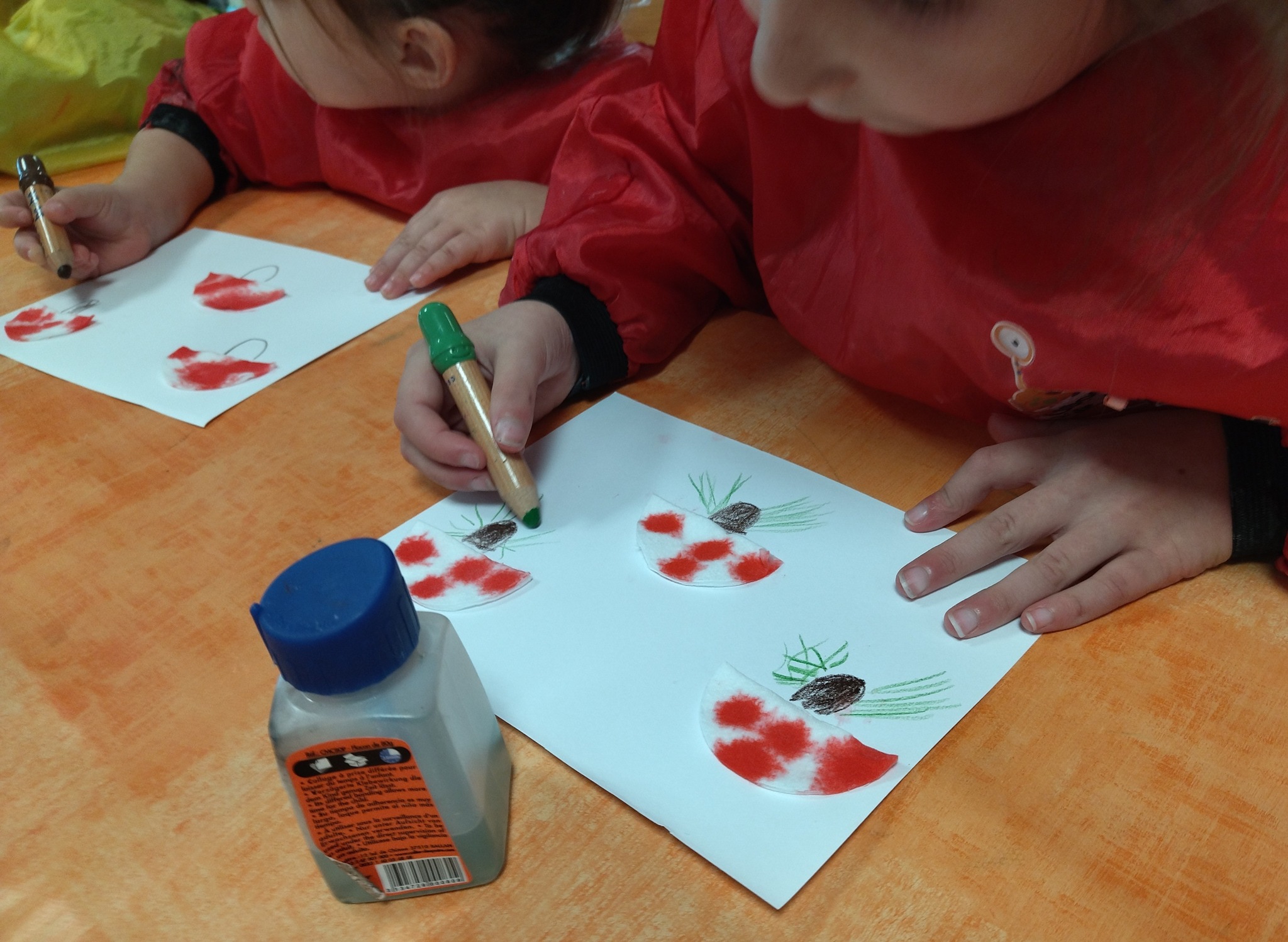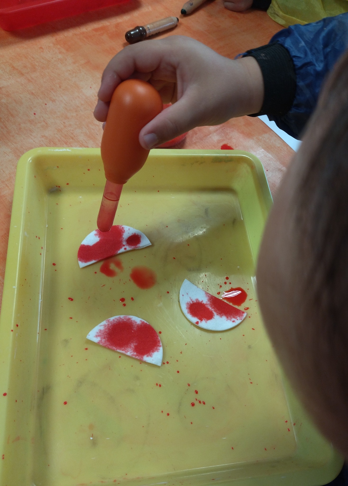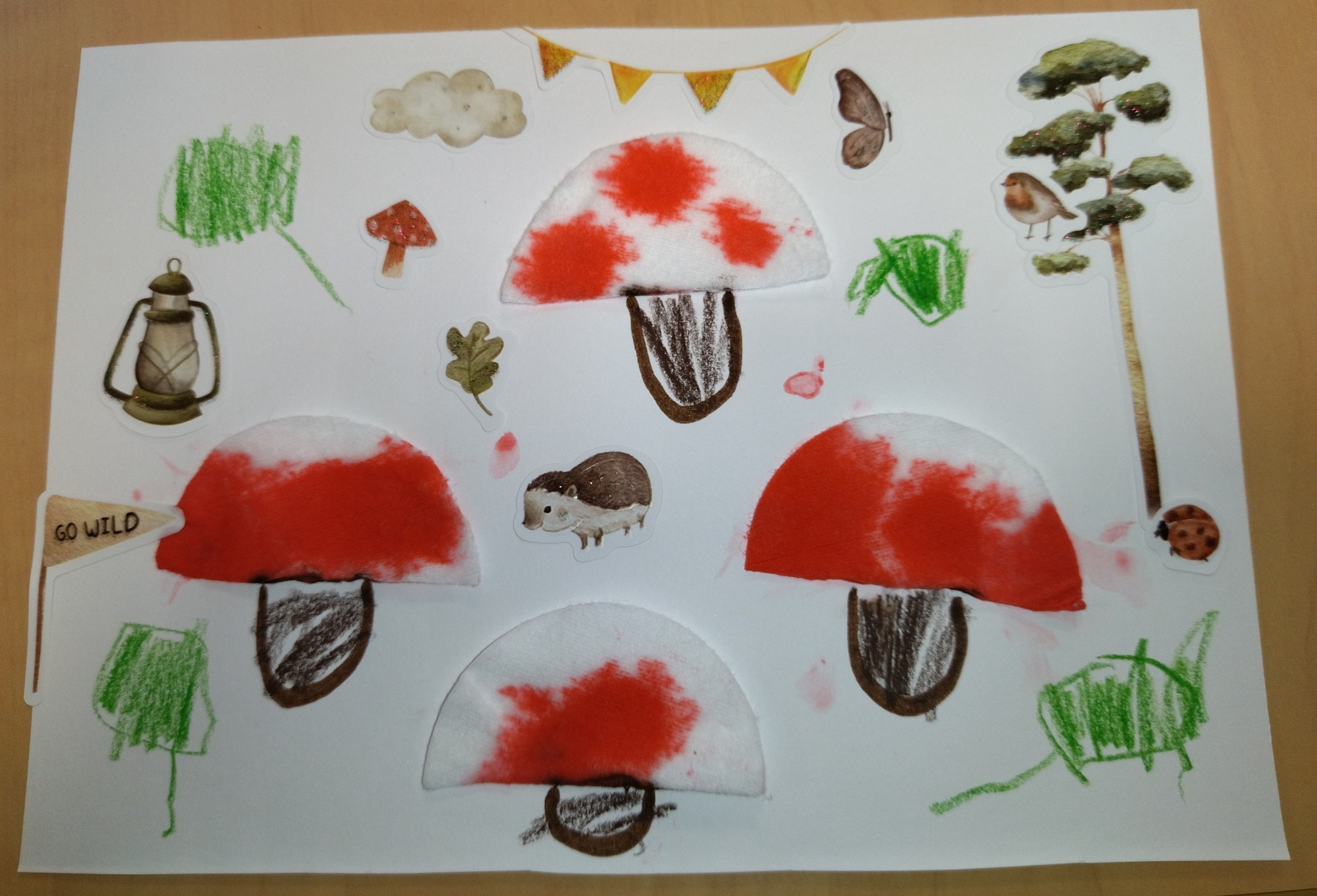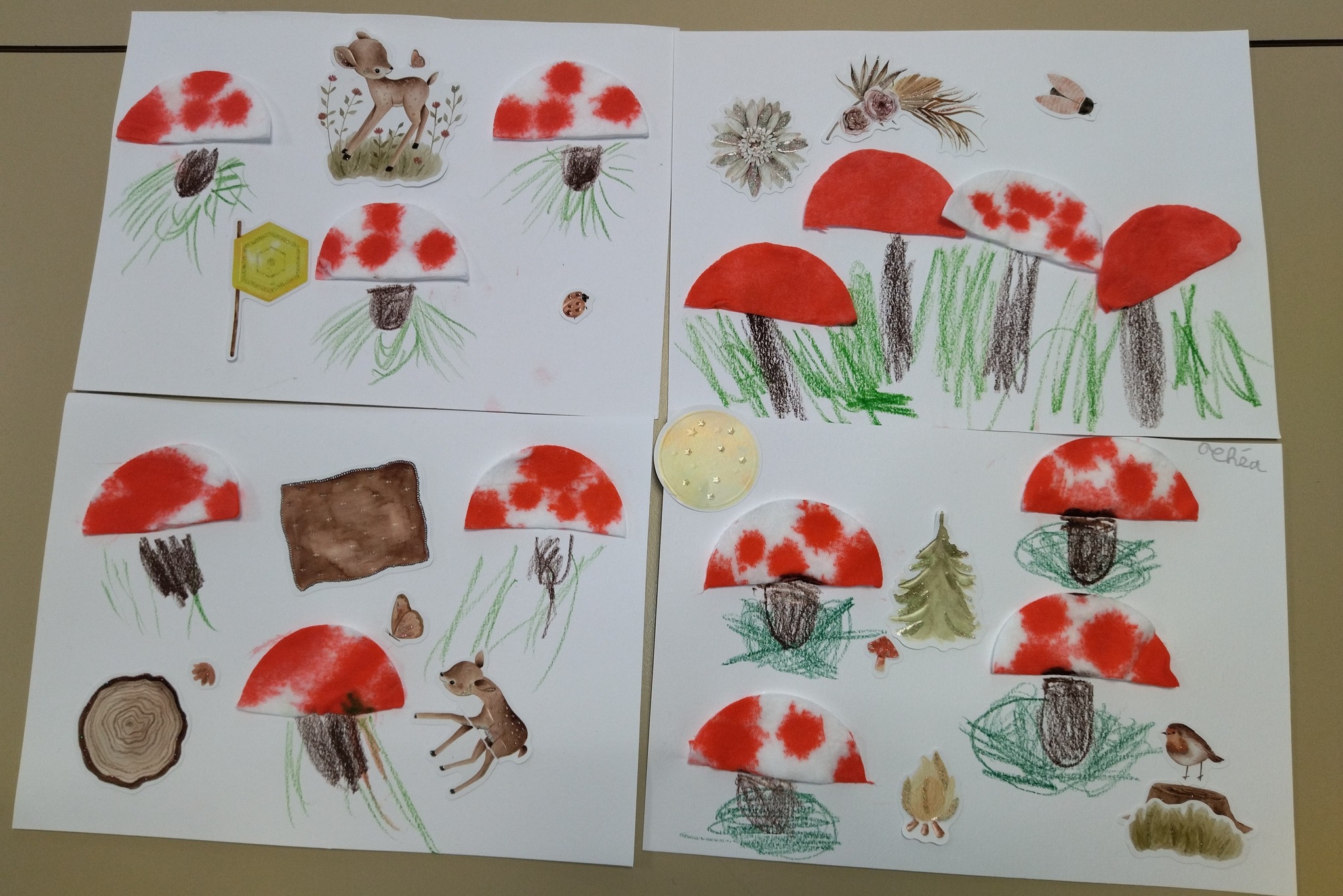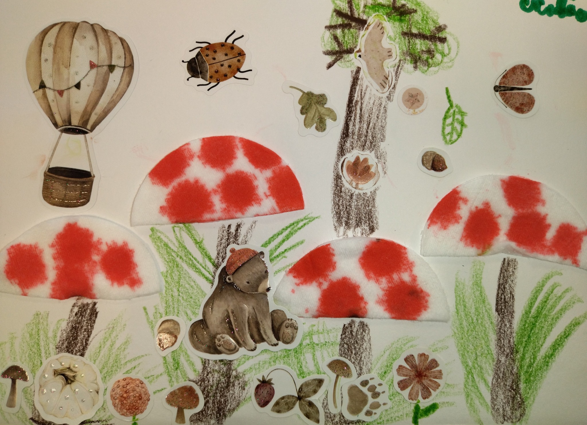Composition « balade d’automne » avec de la peinture à la pipette sur coton Composition « balade d’automne » avec de la peinture à la pipette sur coton 🍄🟫🍂 Source