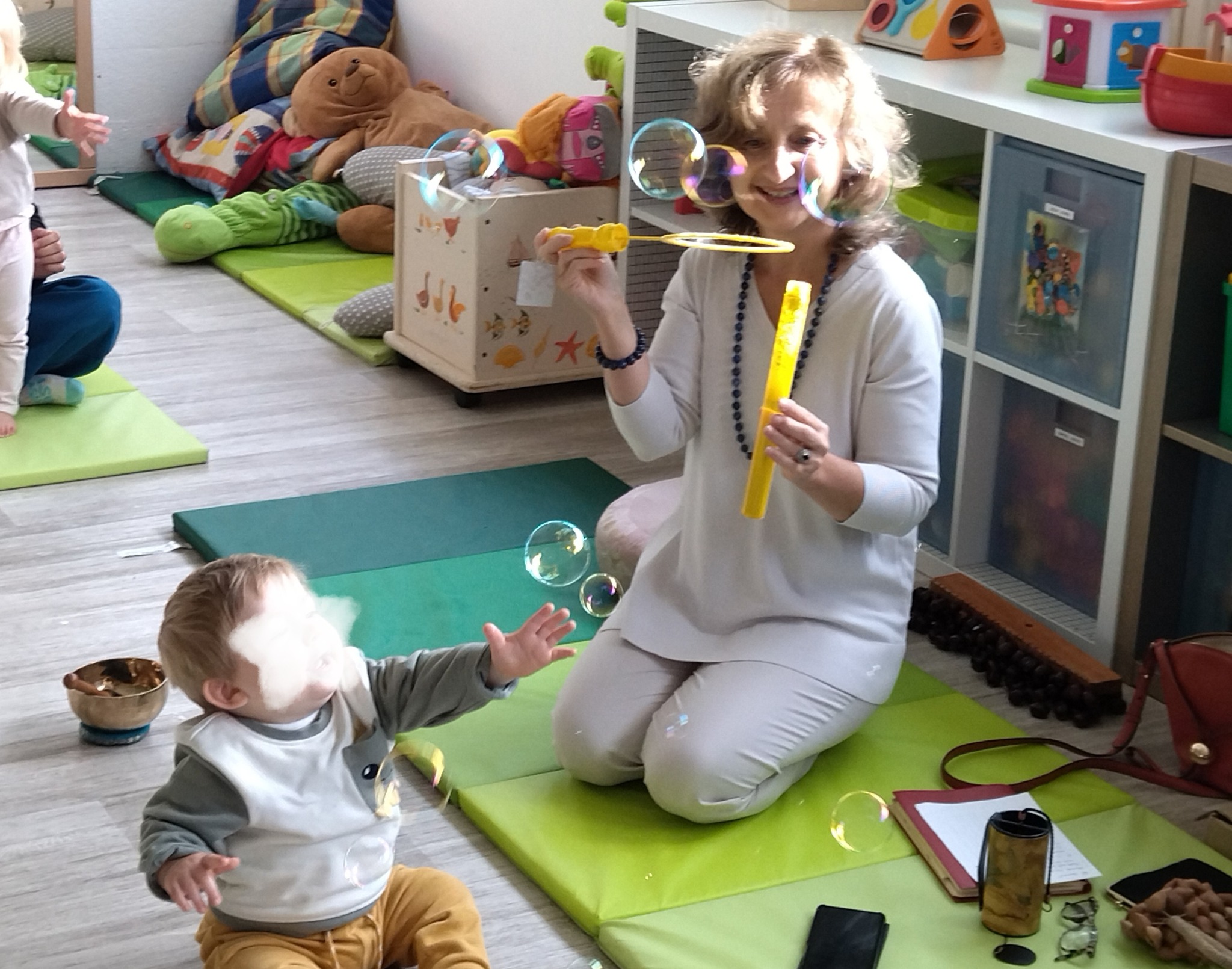Un atelier multi sensoriel : massages, musique, bulles… Un merveilleux moment de partage parent-enfant tout en douceur.