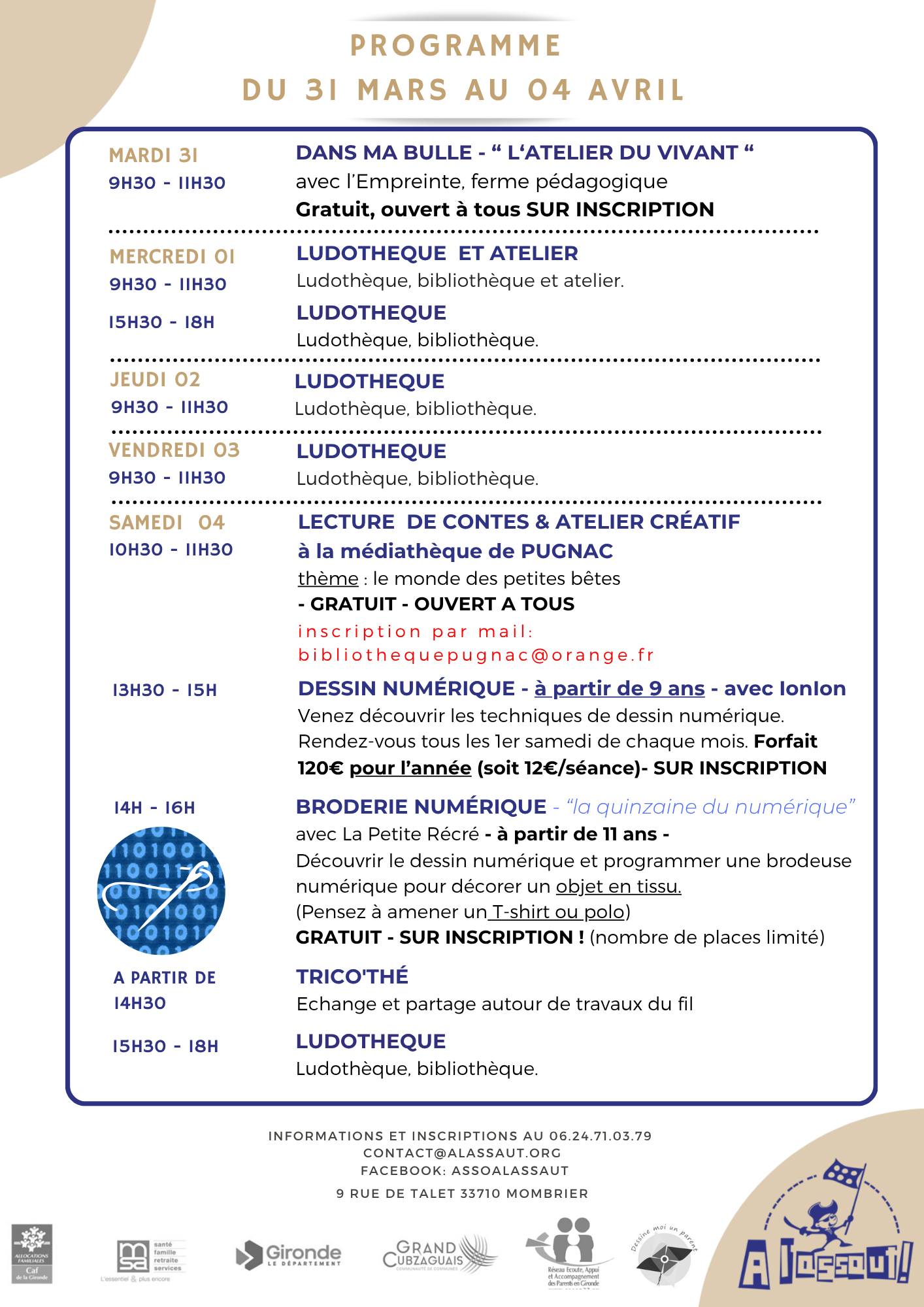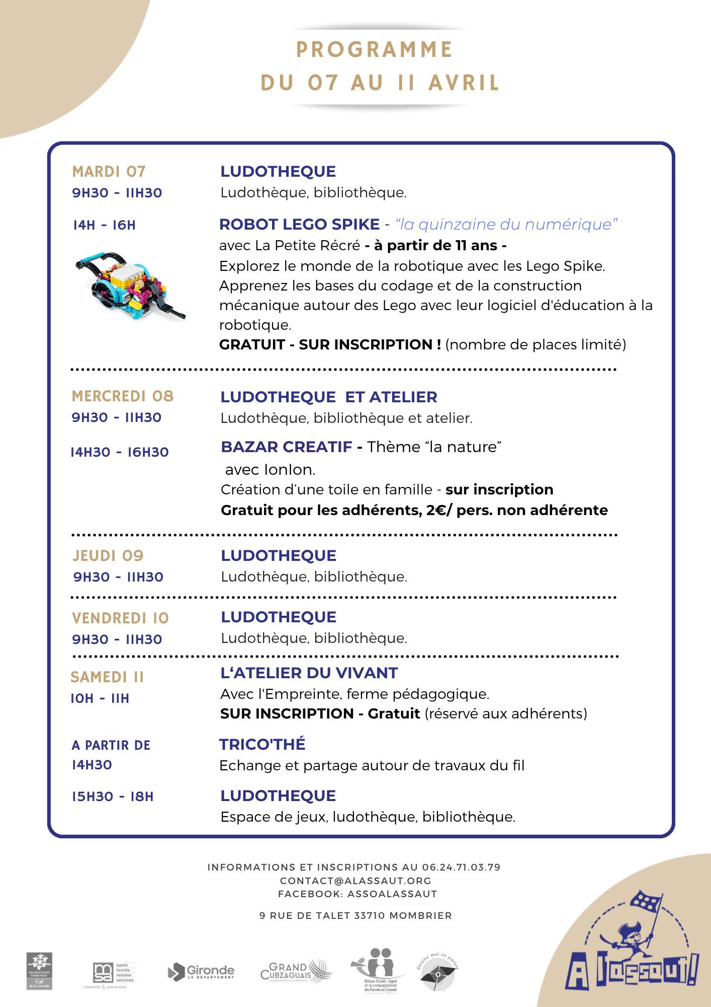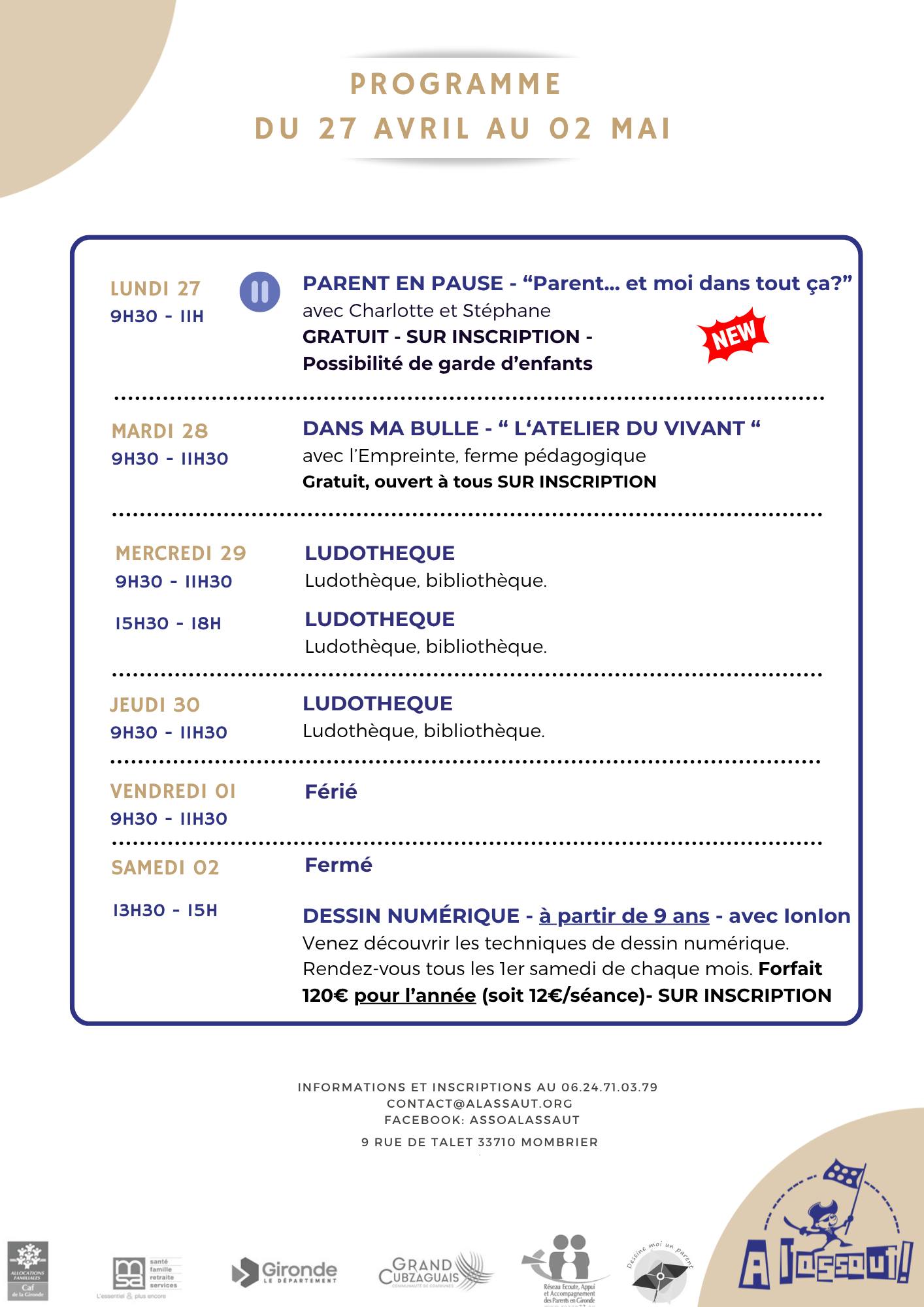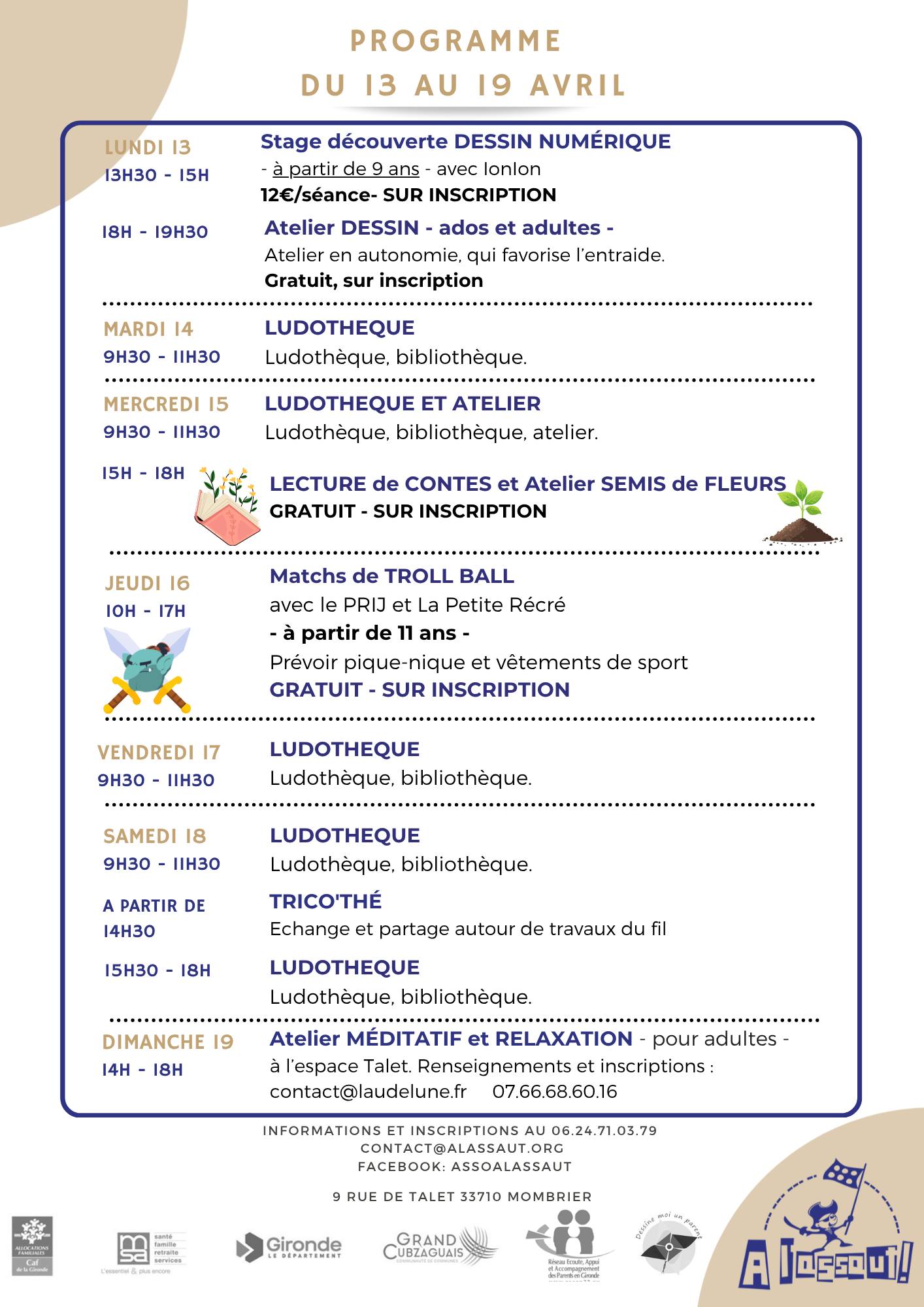 Programme du mois d’avril